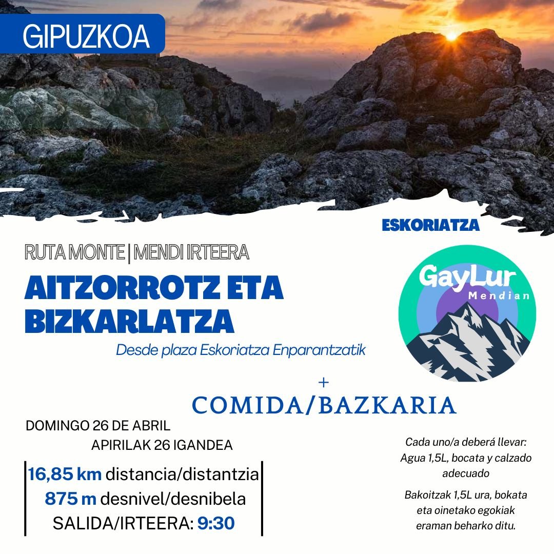 🏔️ Distancia/Distantzia: 16,85 km 🥾 Desnivel/Desnibela: 875 m ⏰ Duración/Iraupena: 4,5h-5h 🏔️ Dificultad/Zailtasuna: Moderada 🗓️ Día/Eguna: 26/04/26